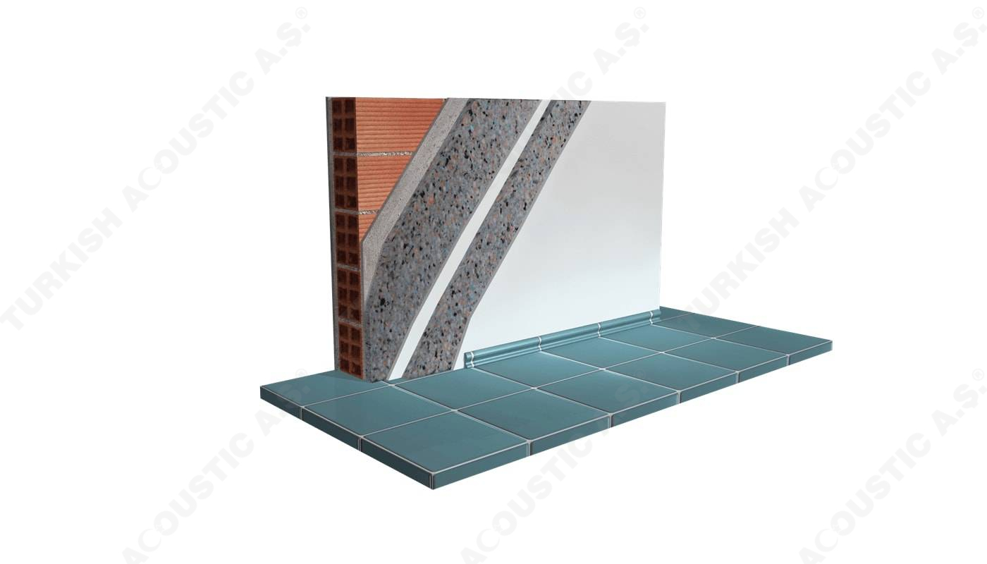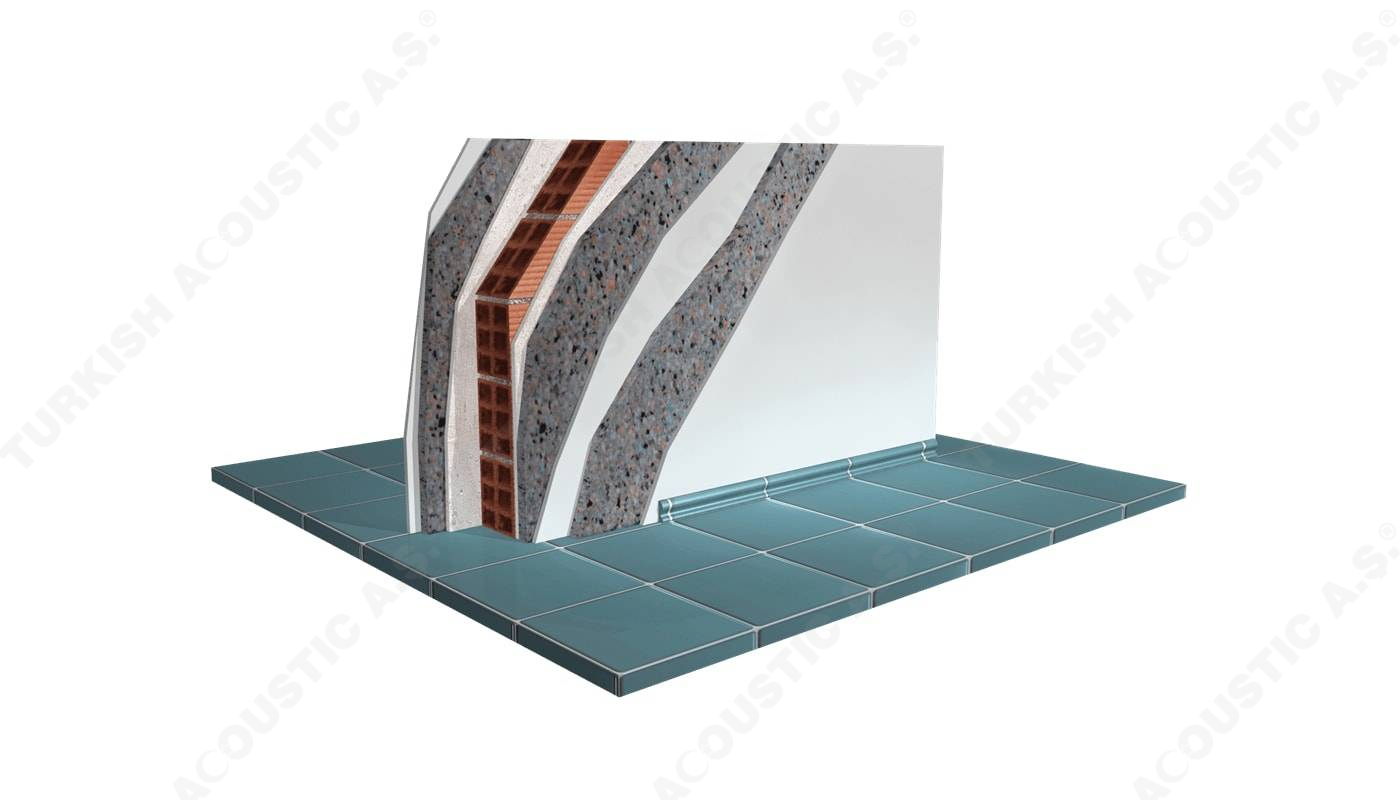 Wall, Floor, Roof Applications: Acoustic sponges, rubber barriers, soft polyurethane based sponges, melamine sponge, felt, perforated metals, perforated woods, perforated gypsum panels, cork. Flooring Applications (to prevent only the impact sound): Polyethylene, rubber foam, merchandise materials made of textile waste.